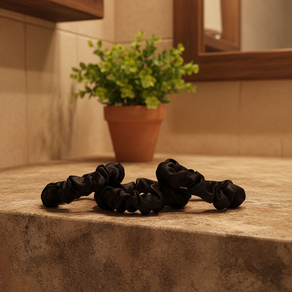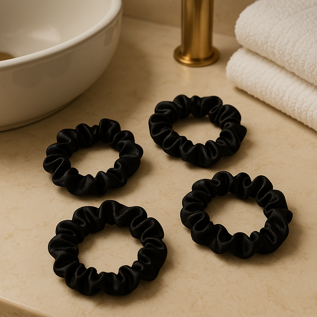 Nos chouchous en satin noir sont conçus pour attacher les cheveux afros sans les casser, tout en préservant leur hydratation. Contrairement aux élastiques classiques, ils glissent délicatement sans tirer ni laisser de marques, même sur les cheveux les plus denses.